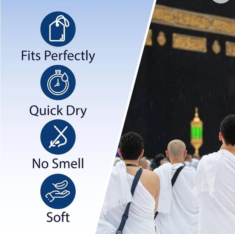 - BREATHABLE: We hand picked selective material and manufacturing process to make each Barakah Ihram breathable, absorbant and adequate for Saudi weather.